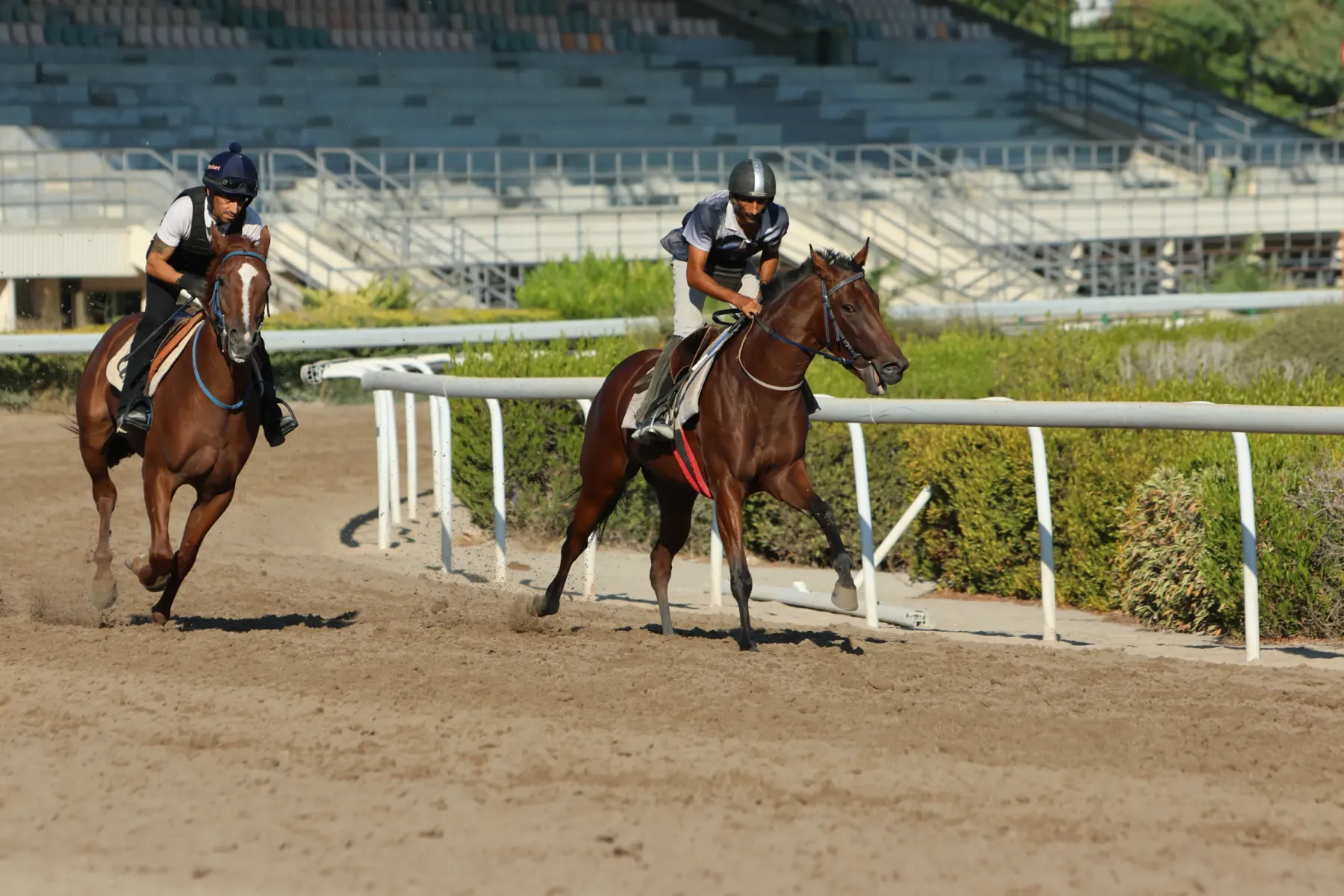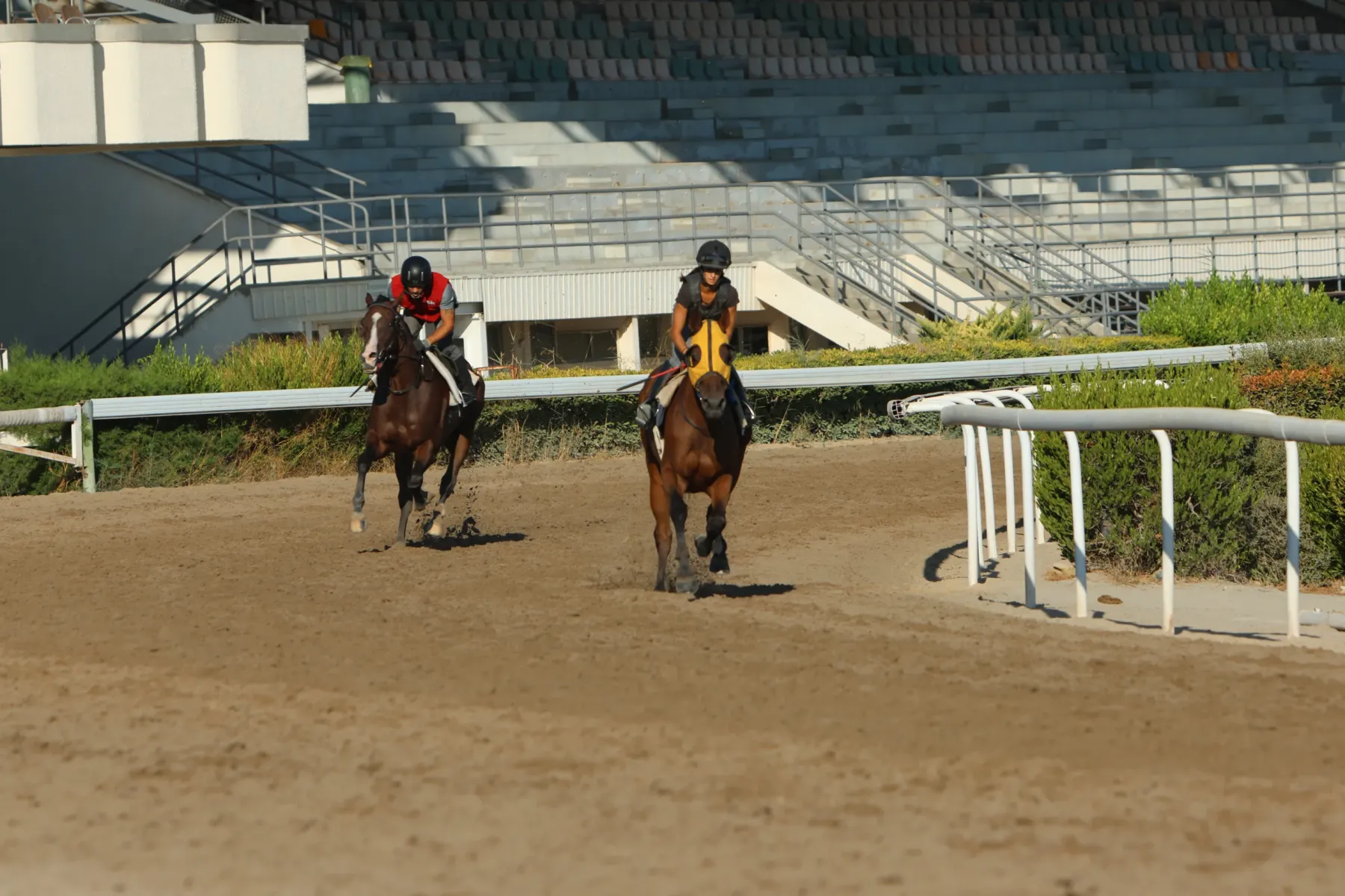 Τα πρώτα δυνατά γκάλοπ, στον νέο στίβο, μετά την πρόσθεση 400 τόνων χαλαζιακής άμμου, έκαναν τα άλογα την Τετάρτη 20 Αυγούστου και εντάθηκαν το Σάββατο 23 Αυγούστου.